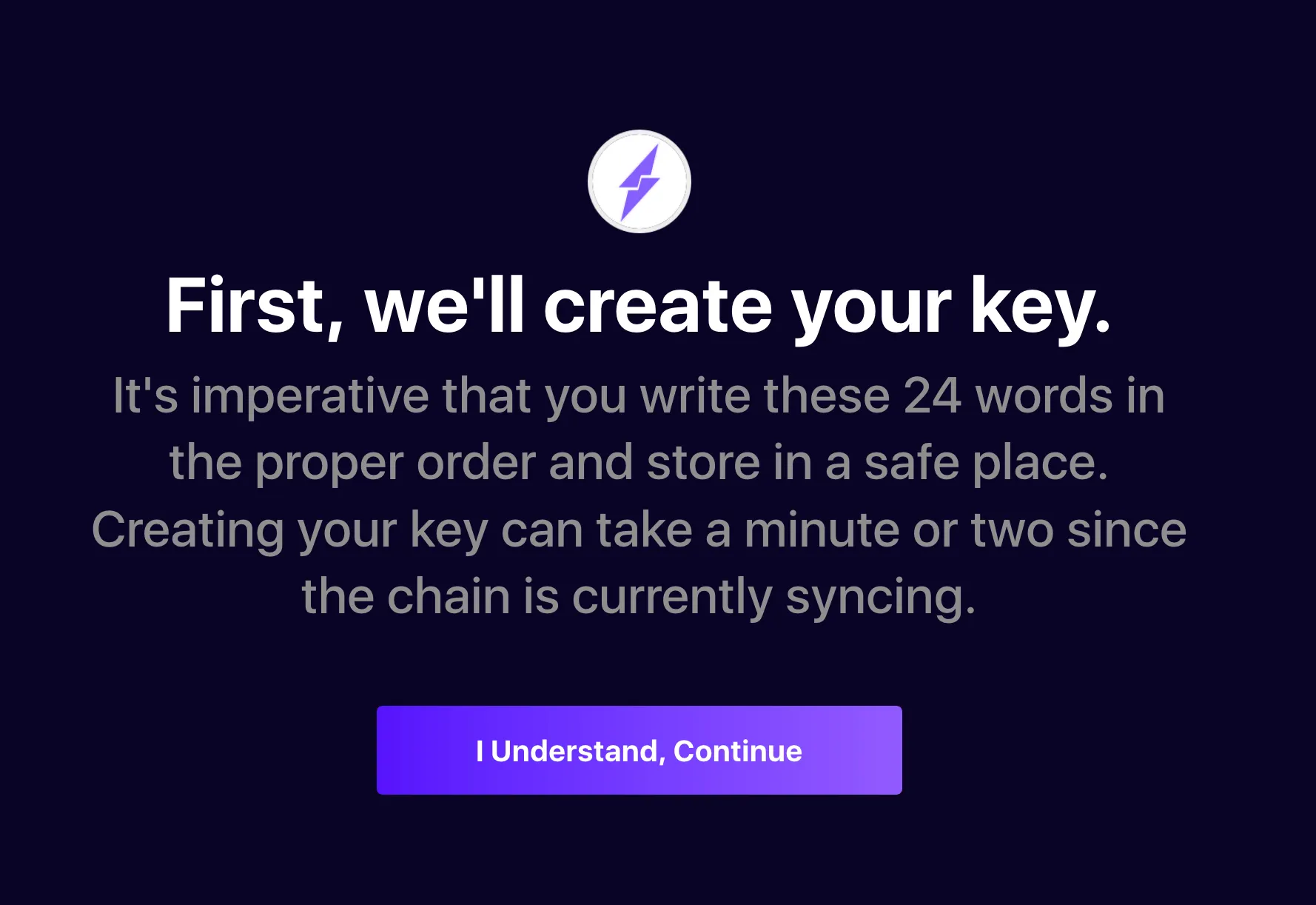After plugging in the power, the node spent about 15 minutes booting up and initializing. Once complete, it was ready to generate my private key and accompanying seed phrase. It’s important to write down the seed phrase on a piece of paper, not your computer, and keep it somewhere safe. If anything ever happens to your node, this is how you are able to restore funds.