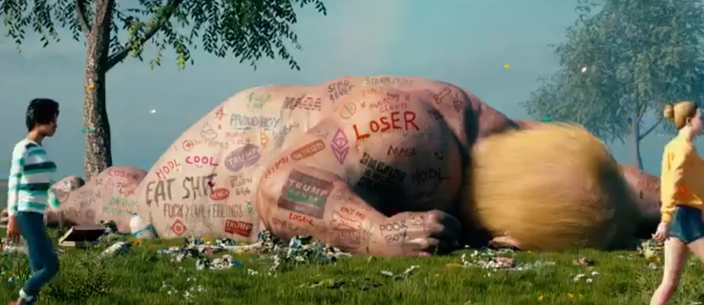 But if Biden's electoral college win survives the various recounts and lawsuits mounted by the GOP, the animated NFT will forever display an image of a decaying Tump corpse slumped next to trash, defaced with “Loser," among other epithets, as oblivious, fresh-faced yuppies stroll by.
