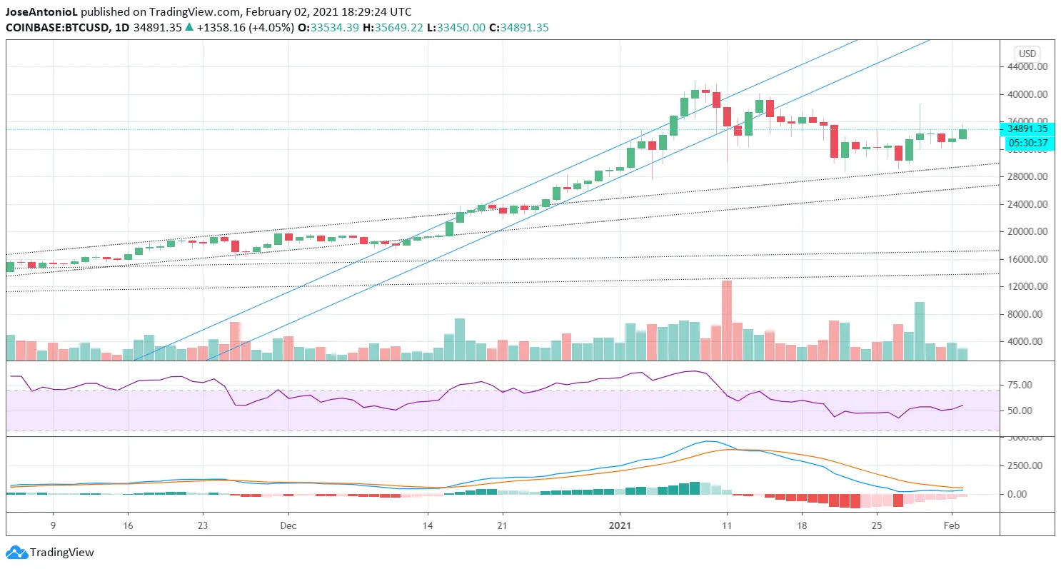 Bitcoin, the most important cryptocurrency in the market by far, rose more than 6% in the last 24 hours. It’s currently trading at $35,600, comfortably breaking through that $35,000 barrier that has kept it trendless since the January 21 crash.