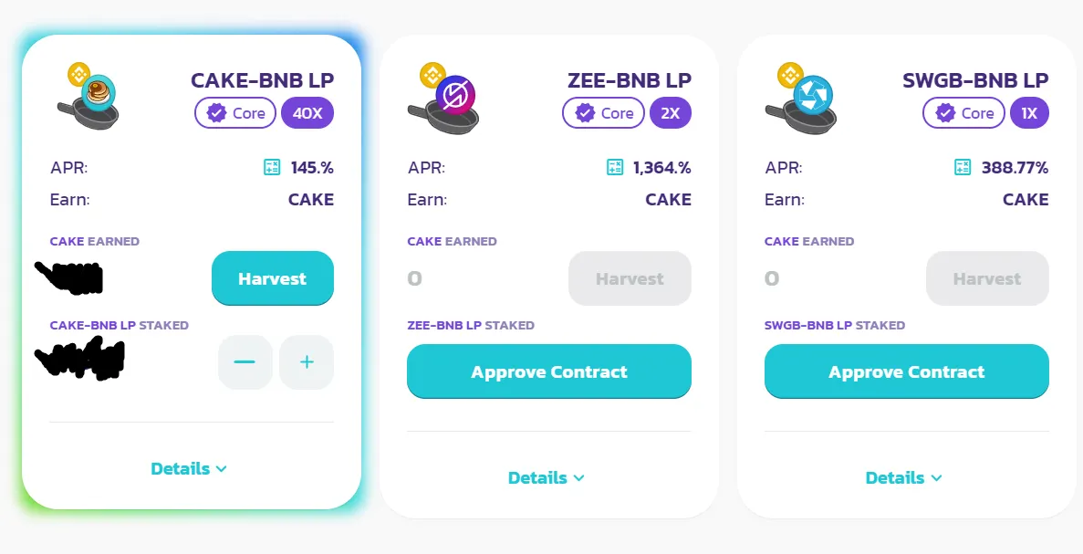 Pancakeswap’s high yield farms remain a draw for users. As the below image shows, the liquidity pool for ZEE/BNB (ZEE is the token for ZeroSwap, a multi-chain DEX aggregator) is paying out over 1,300% to users annually.
