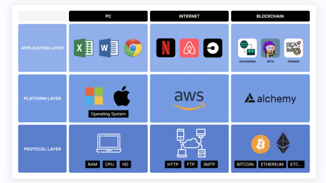 This background may explain Viswanathan and Lau's smooth confidence and seemingly boundless ambitions. The pair say their mission is to "help users get the magic of blockchain," by stripping away many of the technical complexities involving nodes, debugging, and so on. They are also eager to anoint themselves as integral to the next era of computing, sharing a graphic that shows them inheriting the pole position roles of Amazon and Microsoft: