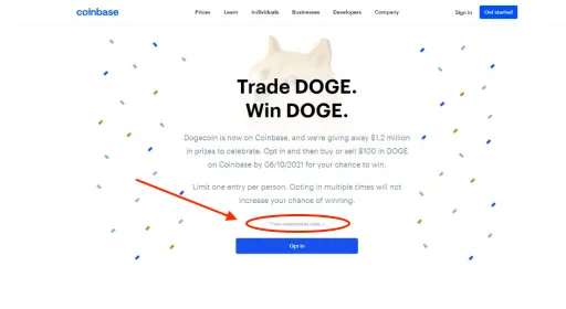 The earlier Bitcoin sweepstakes, however, had only asked entrants to sign up for a Coinbase account (or mail in an index card), while the Dogecoin promo asked entrants to spend $100 to "make a trade" involving Doge.