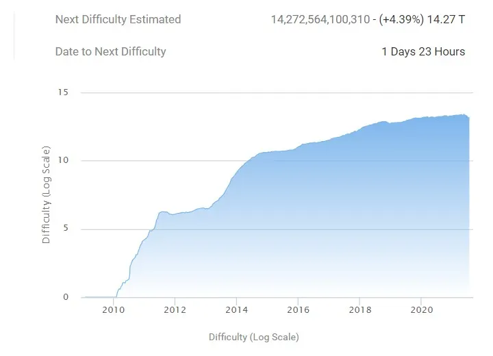 Bitcoin mining difficulty peaked above 25 trillion in mid-May. However, since then it has become as much as 54% easier to find new blocks.