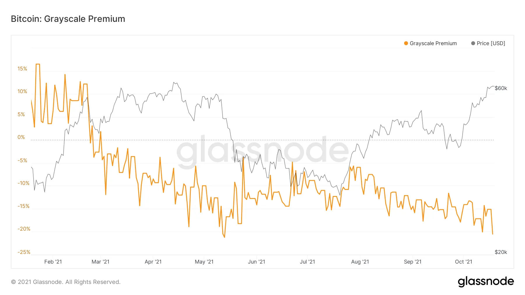 GBTC has been trading at a discount since the end of February 2021. Source: Glassnode.