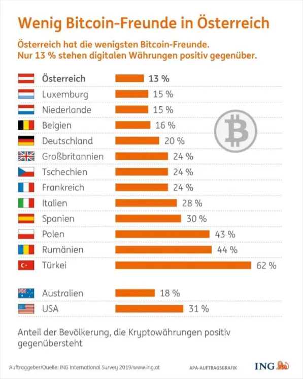 But ING says that the trend of Bitcoin euphoria is generally weakening, rather than strengthening. Today, only 20 percent of Austrians feel that crypto is the digital currency of the future, three percent down from 2018.
