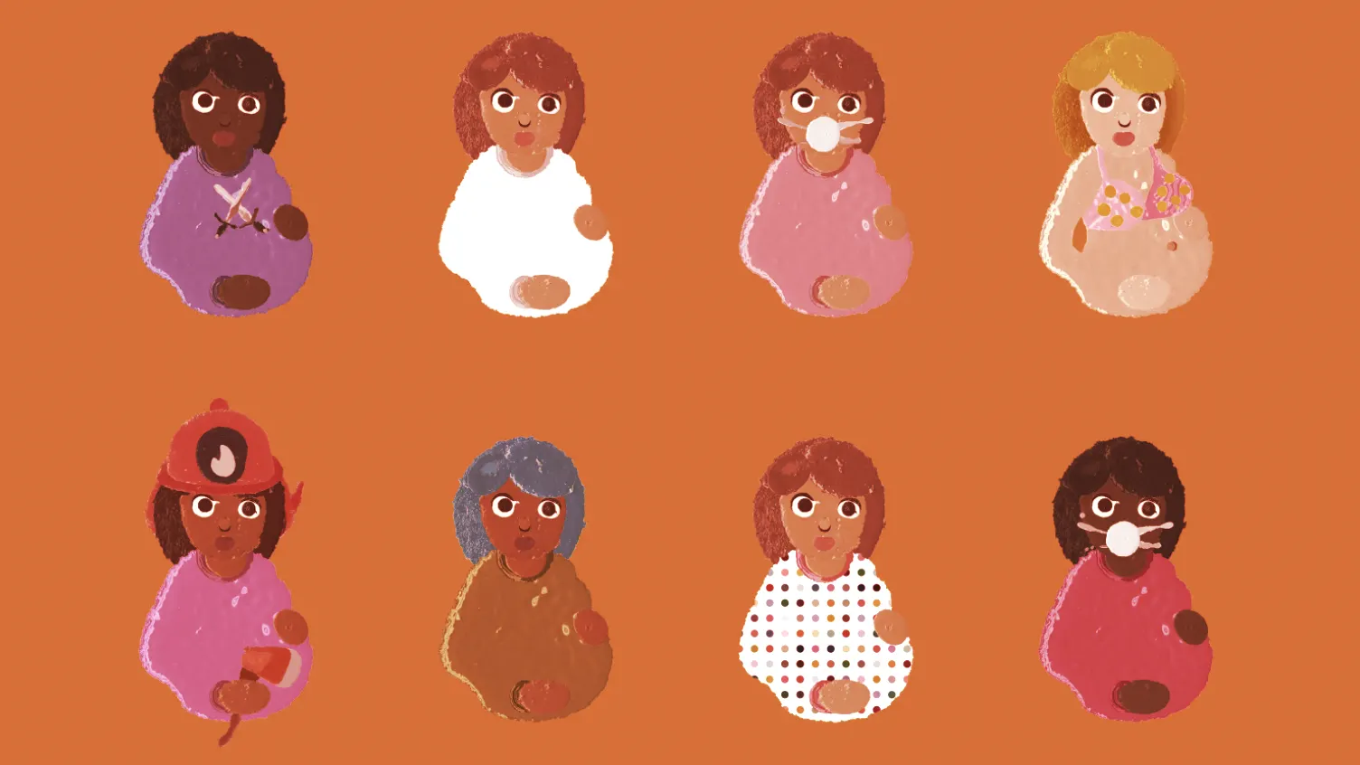 Each of the 10,000 pieces features the same basic grid of 12 cartoonish depictions of pregnant women. But in Hirst's new twist, the art style has changed, and each woman varies in terms of color palette, background, hair, and accessories like handbags and party hats. Some of the women even have a skull in place of a face.