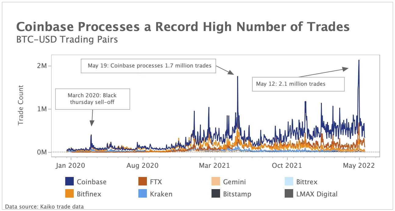 Aunque Coinbase mantuvo su dominio sobre los usuarios, los analistas de Kaiko informaron de que varias plataformas de intercambio más pequeñas, especialmente Bitfinex y Bitstamp, perdieron una gran parte de su cuota de mercado.