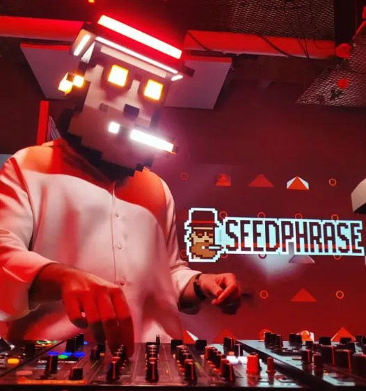 Ese escepticismo aumenta aún más cuando sabes que este nativo digital ha pasado los últimos años actuando como Seedphrase, un DJ que lleva un casco grande basado en su NFT de CryptoPunks #8348, posiblemente el más raro de toda la colección.
