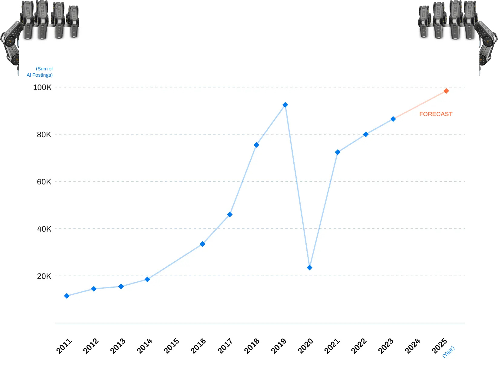 "Proyectamos que para 2024, potencialmente habrá más de 131.000 empleos relacionados con la IA en el mercado de la informática. Este número sustancial indica el rápido crecimiento y la demanda de experiencia en IA en el mercado laboral", dice el estudio.
