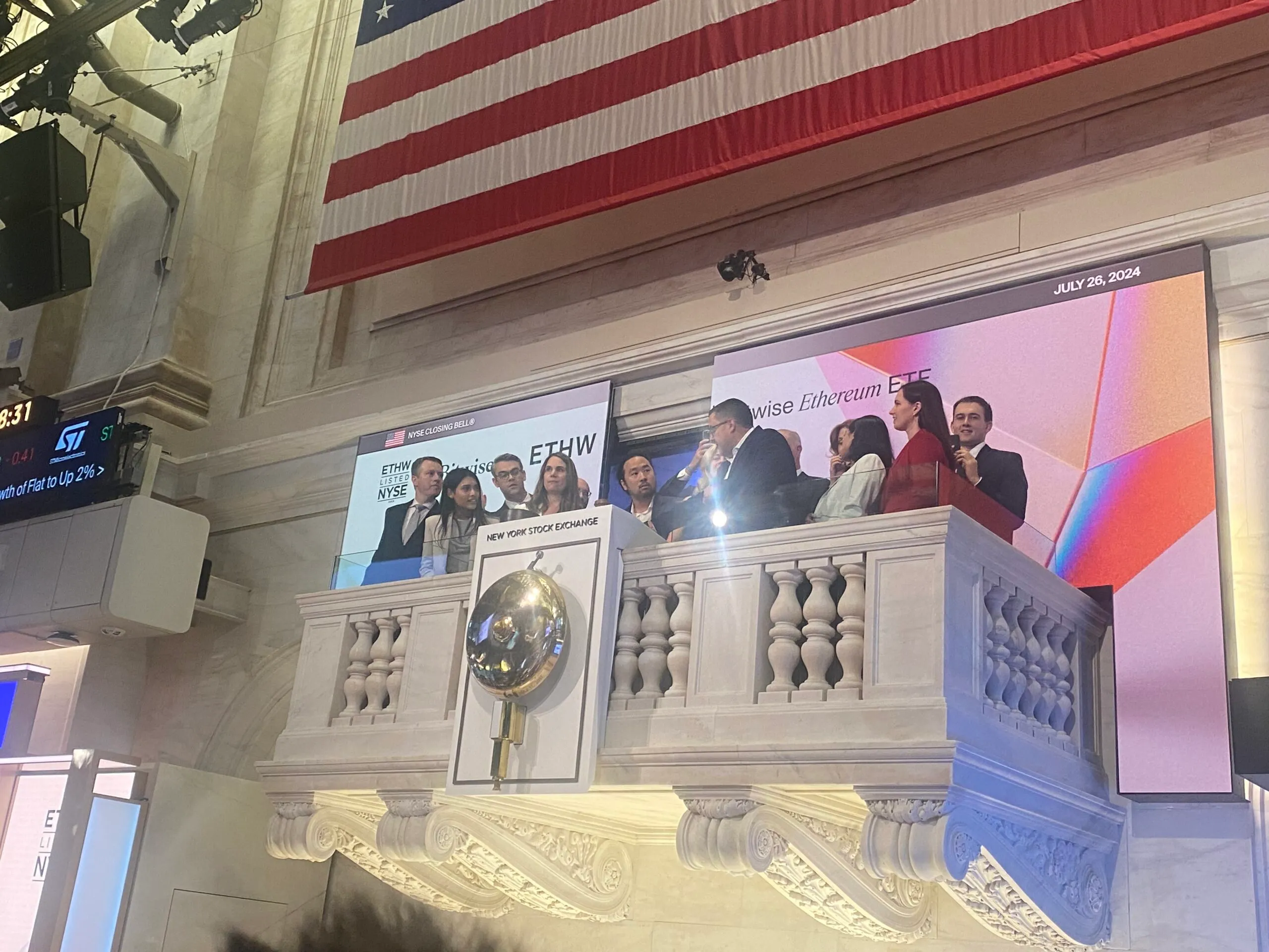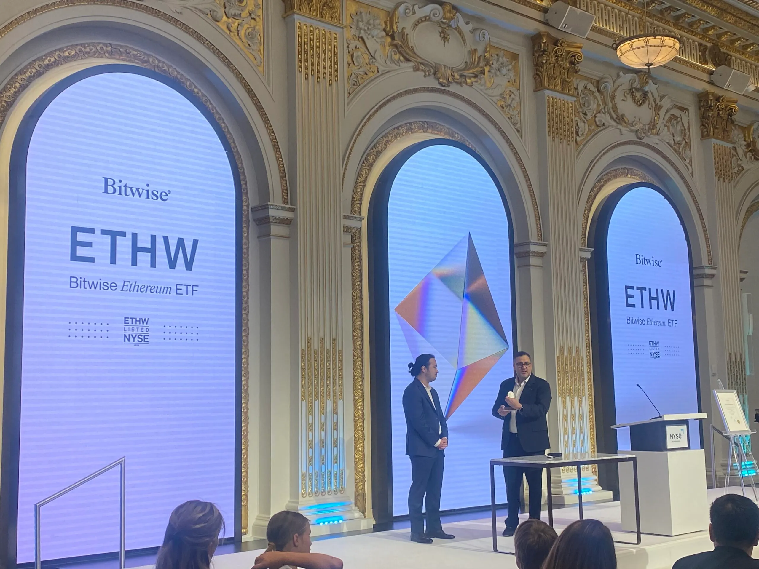 El viernes por la tarde, dentro del NYSE, banqueros, gestores de activos y algunos pesos pesados de los NFT se reunieron para celebrar la llegada de los ETF de Ethereum al contado en Estados Unidos tocando la campana de cierre de la bolsa. Estaban allí por invitación de Bitwise, uno de los primeros nueve emisores de ETF de ETH al contado.