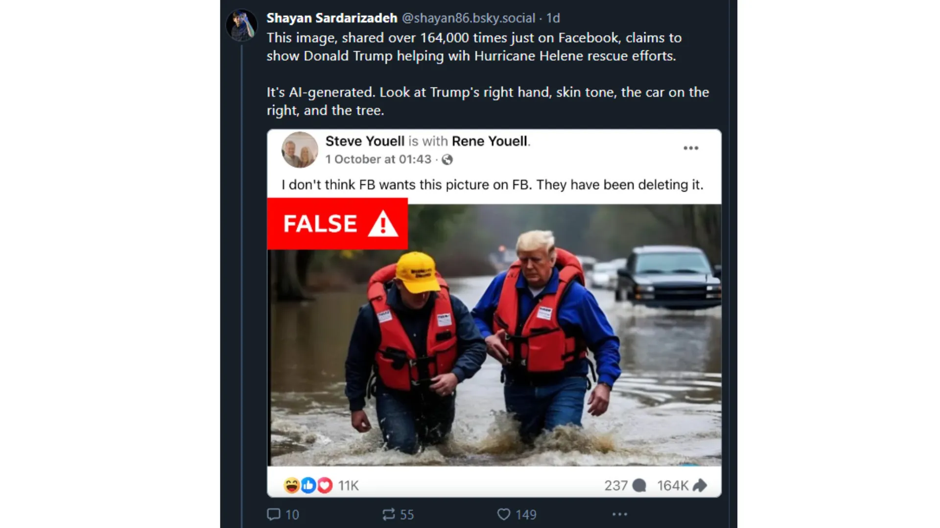 - En medio del huracán Helene, una ola de desinformación generada por inteligencia artificial y humanos inundó las redes sociales.
