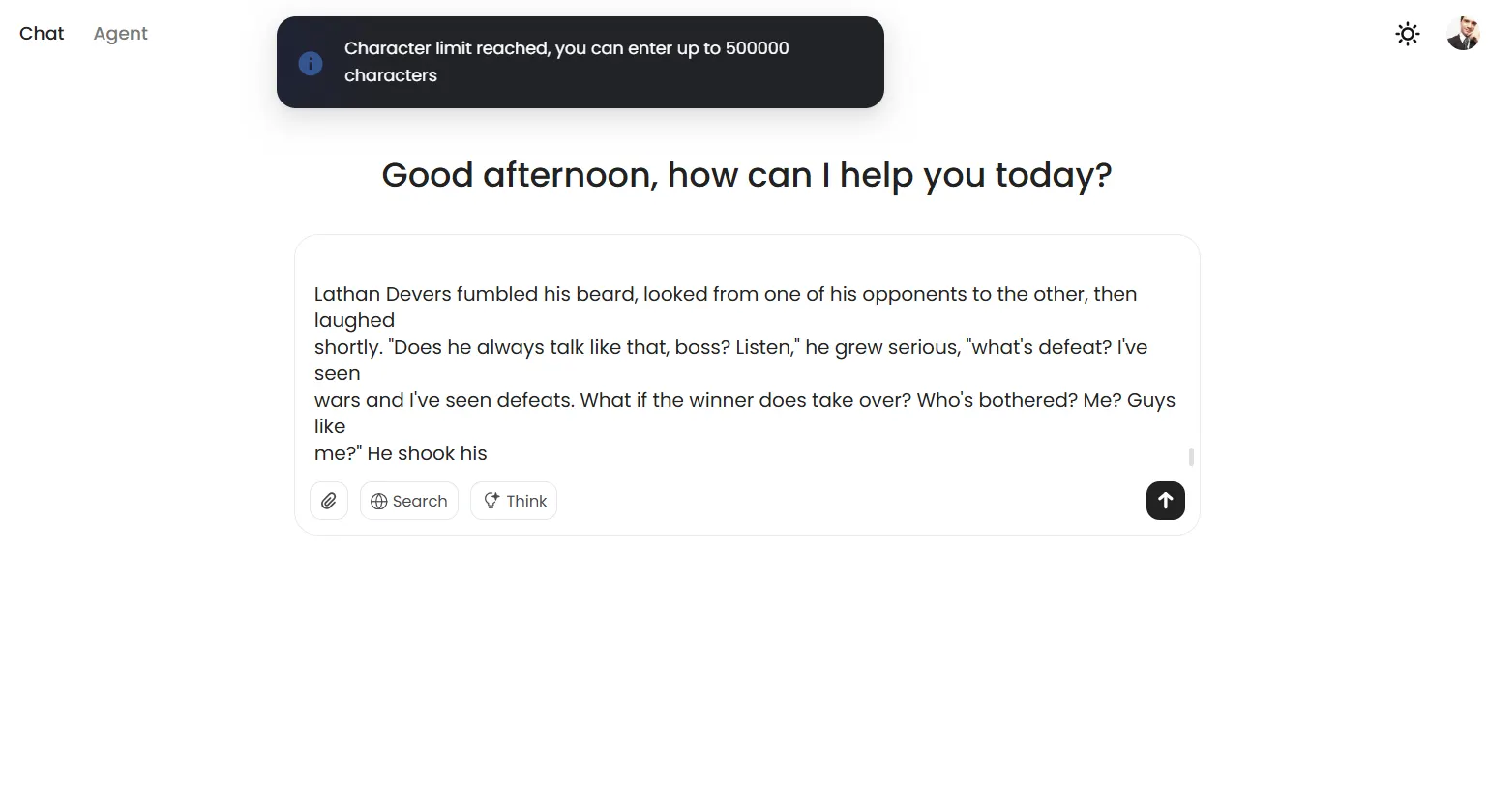 MiniMax-M1 se topó con una pared inesperada durante las pruebas de contexto largo. A pesar de anunciar una ventana de contexto de un millón de tokens, el modelo rechaza prompts que excedan 500.000 caracteres, mostrando una advertencia sobre limitaciones del prompt en lugar de intentar procesar la entrada.