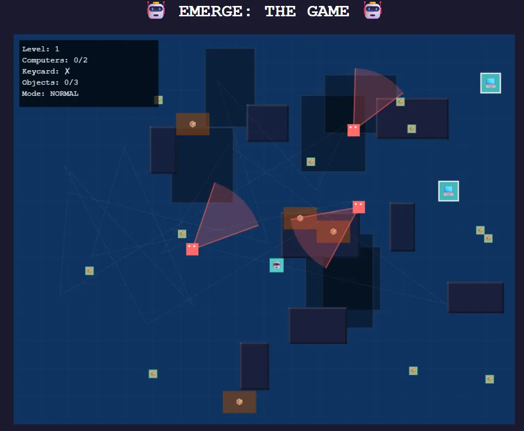 Le asignamos la tarea de crear un juego básico de sigilo en el que un robot trata de encontrar a su novia PC para lograr AGI, mientras un ejército de periodistas patrulla el área para evitar que suceda—y proteger sus trabajos.