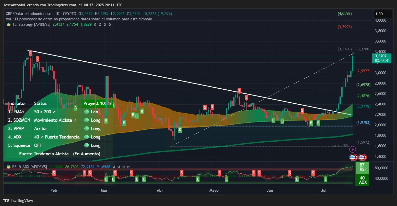 Los indicadores técnicos de XRP están disparando en todos los cilindros, pintando un cuadro extremadamente alcista: