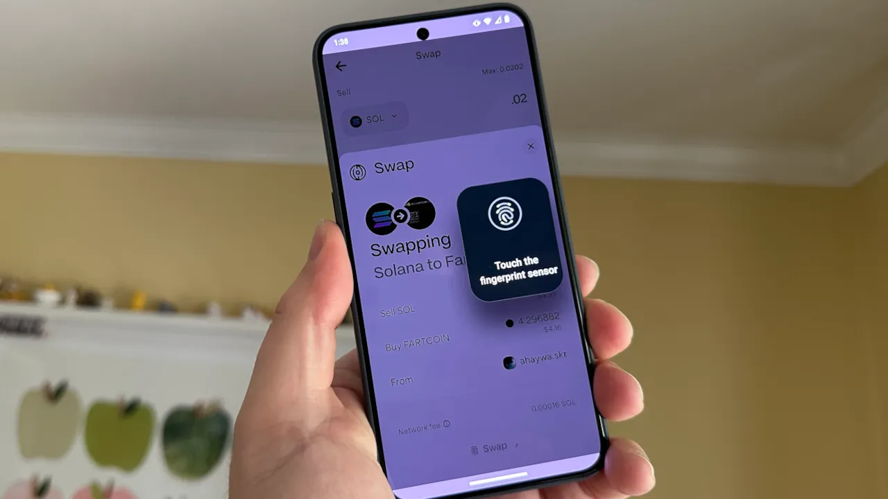 La Seed Vault Wallet nativa, impulsada por Solflare, es fácil de usar, con un doble toque del botón lateral y escaneo de huella dactilar usado para autorizar movimientos. Phantom y otras billeteras también pueden agregarse vía la Tienda de Dapps de Solana. Y el Seeker ID, que te da un nombre de billetera .skr en inglés simple (o "pasaporte digital") para enviar y recibir cripto, es un toque amigable que podría volverse más útil con el tiempo.