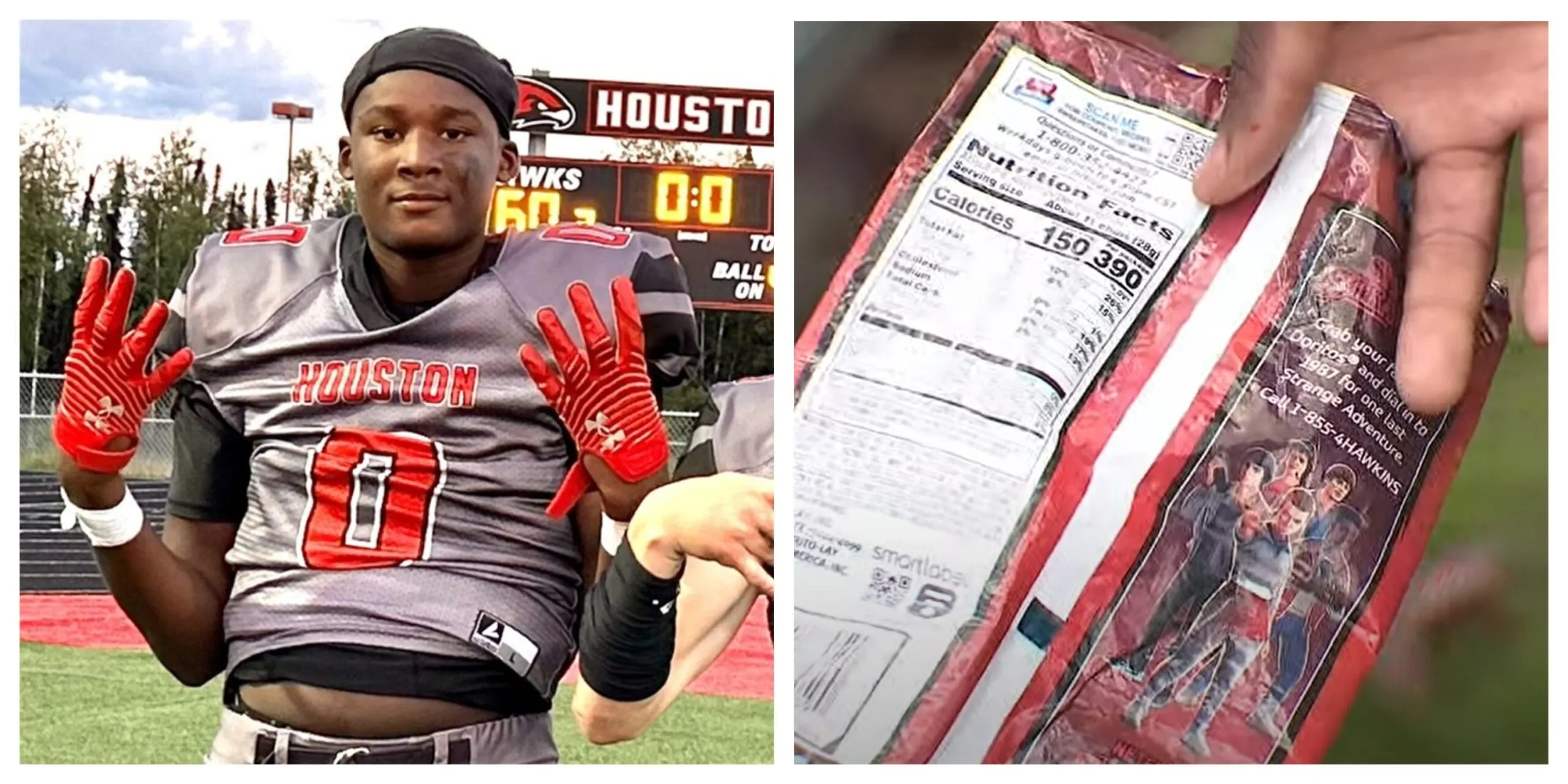 Izquierda: El estudiante sospechoso, Derecha: La bolsa sospechosa de Doritos.