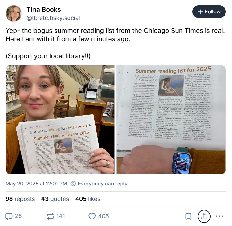 El momento fue la cereza del pastel: el Sun-Times acababa de despedir al 20% de su personal. El CEO del periódico se disculpó y no cobró a los suscriptores por esa edición. Probablemente obtuvo esa idea de un LLM.