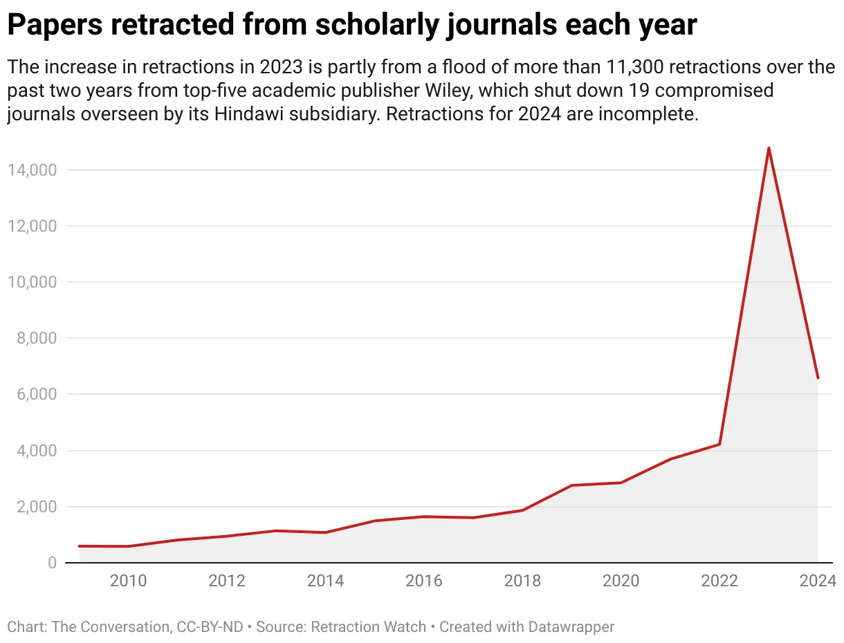 La era de la basura de IA en la ciencia está aquí, con datos mostrando que las retractaciones han aumentado drásticamente desde el lanzamiento de ChatGPT.