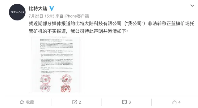 Según un artículo publicado en el WeChat de Antminer, propiedad de Bitmain, a mediados de julio, un antiguo personal de Bitmain "trasladó ilegalmente" unos 10.000 ASICs de una granja en Mongolia Interior, causando "graves daños financieros a Bitmain y a sus clientes".