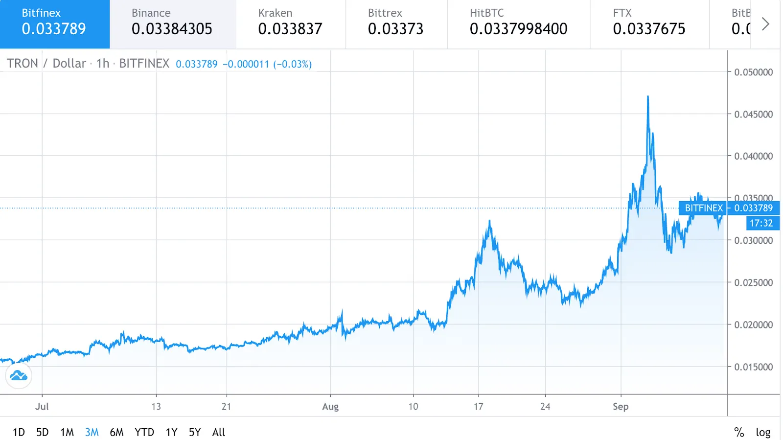 A pesar de llegar tarde al juego, Justin Sun entró en el mundo de las DeFi la primera semana de septiembre con una variedad de proyectos imitadores como JustSwap y SalmonSwap que, sorprendentemente, han conseguido una cantidad impresionante de liquidez. Y eso ha hecho subir el precio de TRX, el token nativo de Tron, en una rara tendencia al alza.