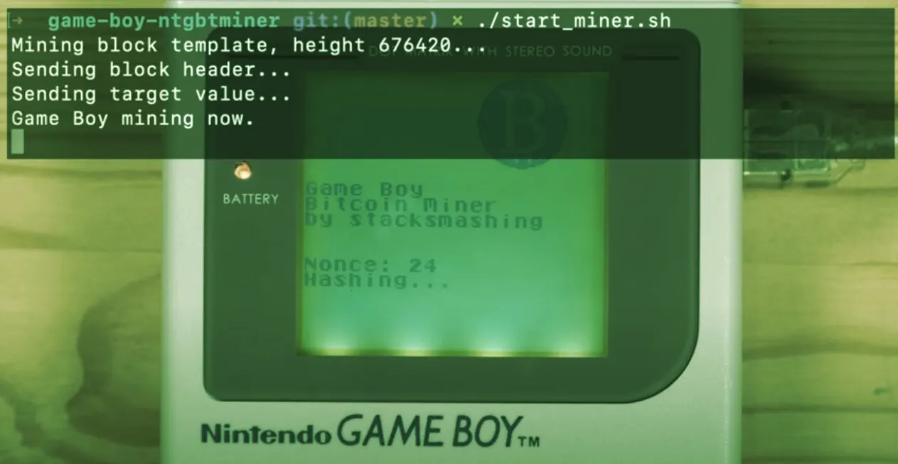 Stacksmashing, un autollamado investigador informático y creador de contenidos en YouTube, ha adaptado un Game Boy de 1989—el primer videojuego portátil importante de Nintendo—en un minero de Bitcoin. Uno bastante lento, pero funcional.