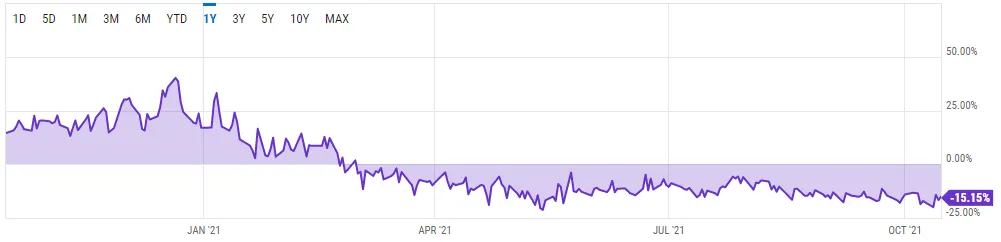 A 15 de octubre, Grayscale contaba con $52.600 millones de dólares en activos gestionados, con nada menos que $38.600 millones, o el 73% de todos los fondos, asignados a GBTC. Sin embargo, el fideicomiso viene con una serie de desventajas, como un período de bloqueo de seis meses en las inversiones y una comisión de gestión anual del 2%.