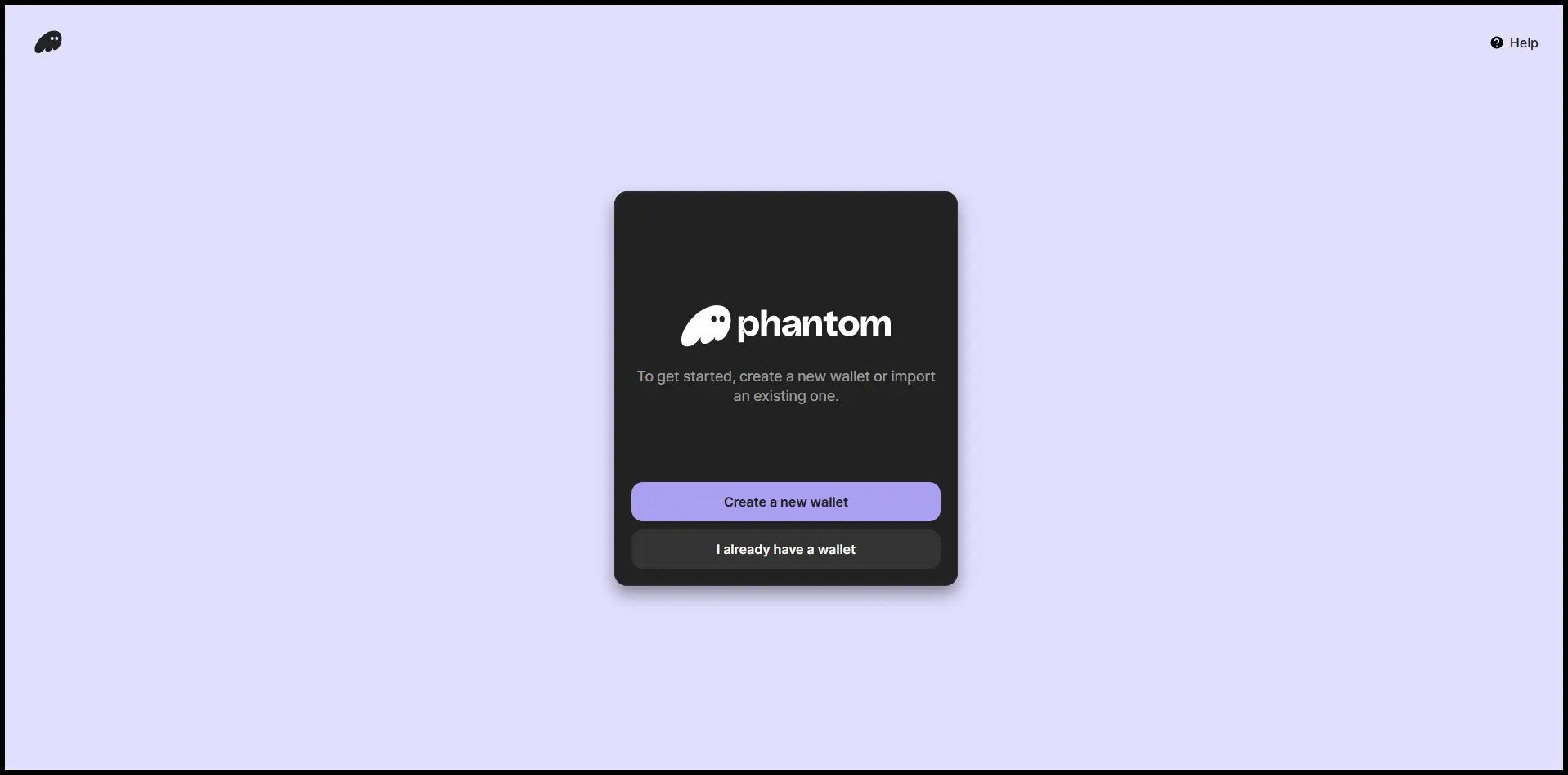 Para comenzar a configurar una wallet Phantom, haz clic en el icono en la barra de extensiones de tu navegador. Puedes crear una wallet usando una dirección de correo electrónico o una frase semilla.