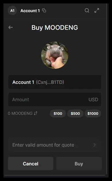 Debido a su velocidad y bajas tarifas de transacción, Solana es una red popular para lanzar memecoins. Phantom permite a los usuarios comprar y comerciar memecoins y tokens basados en Solana, incluyendo Moo Deng (MOODENG), Star Atlas (ATLAS), Drift Protocol (DRIFT), JITO (JTO) y Jupiter (JUP), directamente desde la wallet.