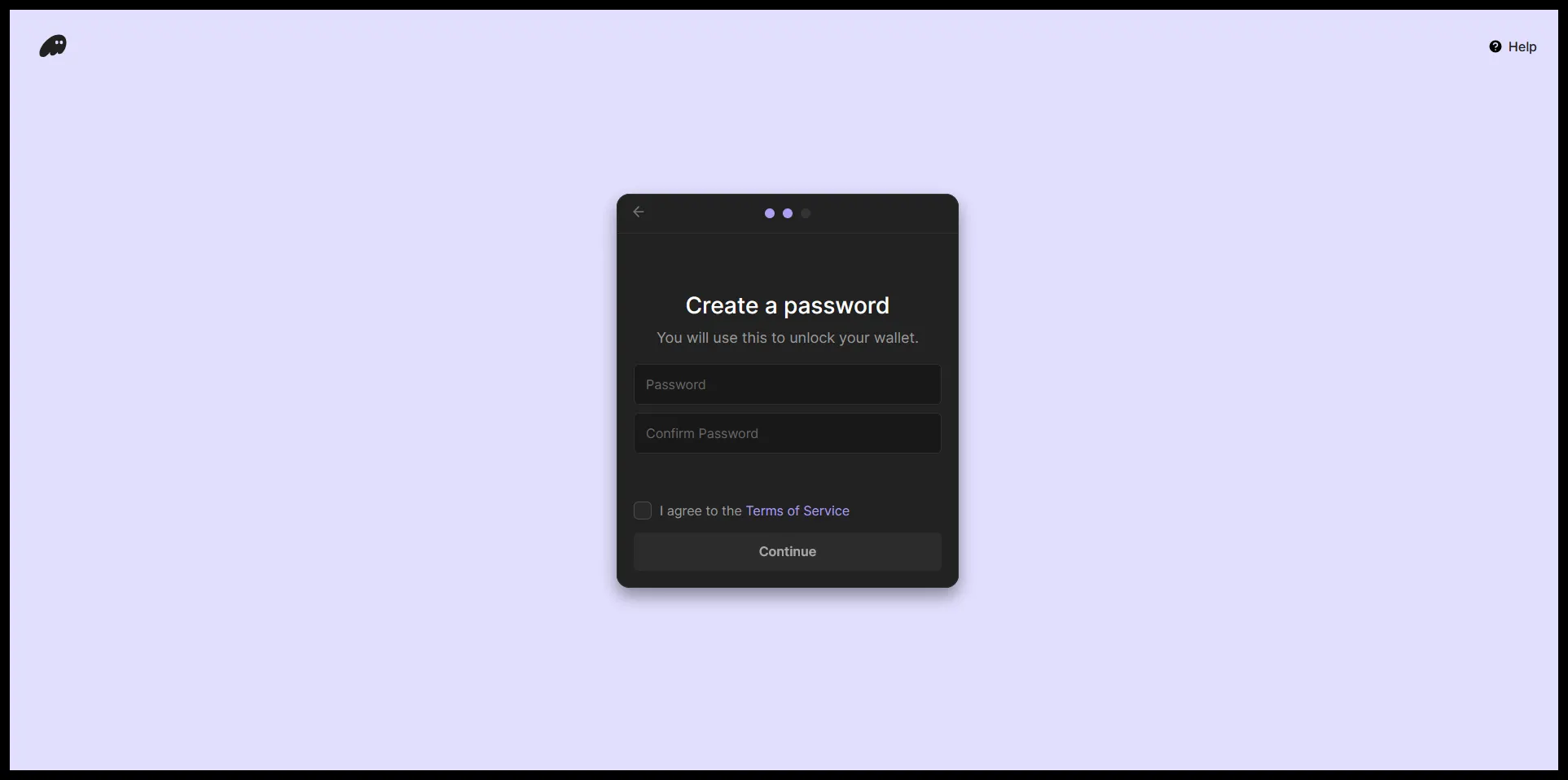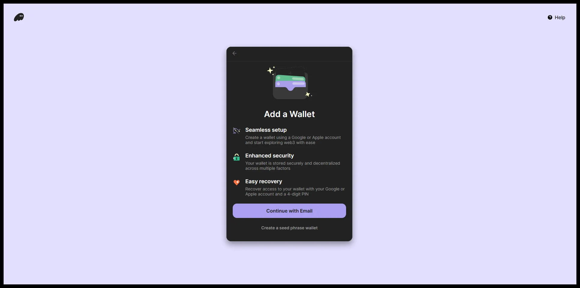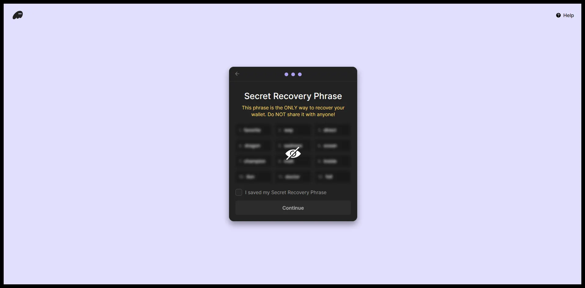 Phantom permite a los usuarios configurar una billetera utilizando una dirección de correo electrónico o crear una billetera de frase semilla que proporciona doce palabras aleatorias para registrarlas para uso futuro.