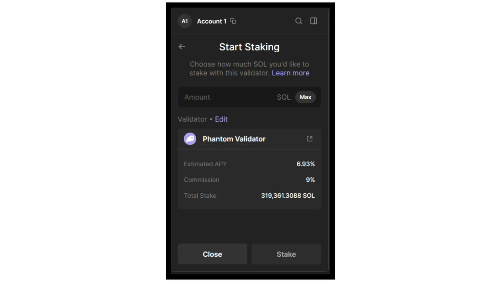 Phantom permite a los usuarios hacer staking de SOL con validadores de Solana, ayudando a asegurar la red mientras ganan recompensas. Antes de seleccionar un validador, los usuarios deben investigar cada validador cuidadosamente para evitar estafas.