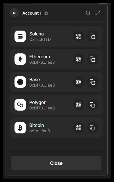 Enviar y recibir criptomonedas con Phantom es simple, dando a los usuarios dos opciones para recibir fondos: generar un código QR escaneable si envías desde una wallet móvil o copiar y pegar la dirección de criptomonedas de tu wallet en el sitio web deseado.