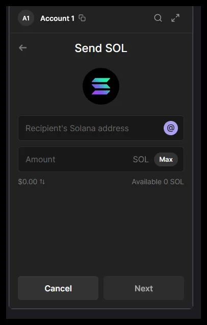 Para enviar fondos usando tu extensión de navegador Phantom, elige la criptomoneda que deseas enviar, ingresa la dirección del destinatario y especifica la cantidad. Phantom también permite a los usuarios crear nombres o handles personalizados que pueden usarse en lugar de la dirección de criptomonedas larga y compleja. Usar un handle hace las transacciones más fáciles y reduce el riesgo de errores al ingresar una dirección.