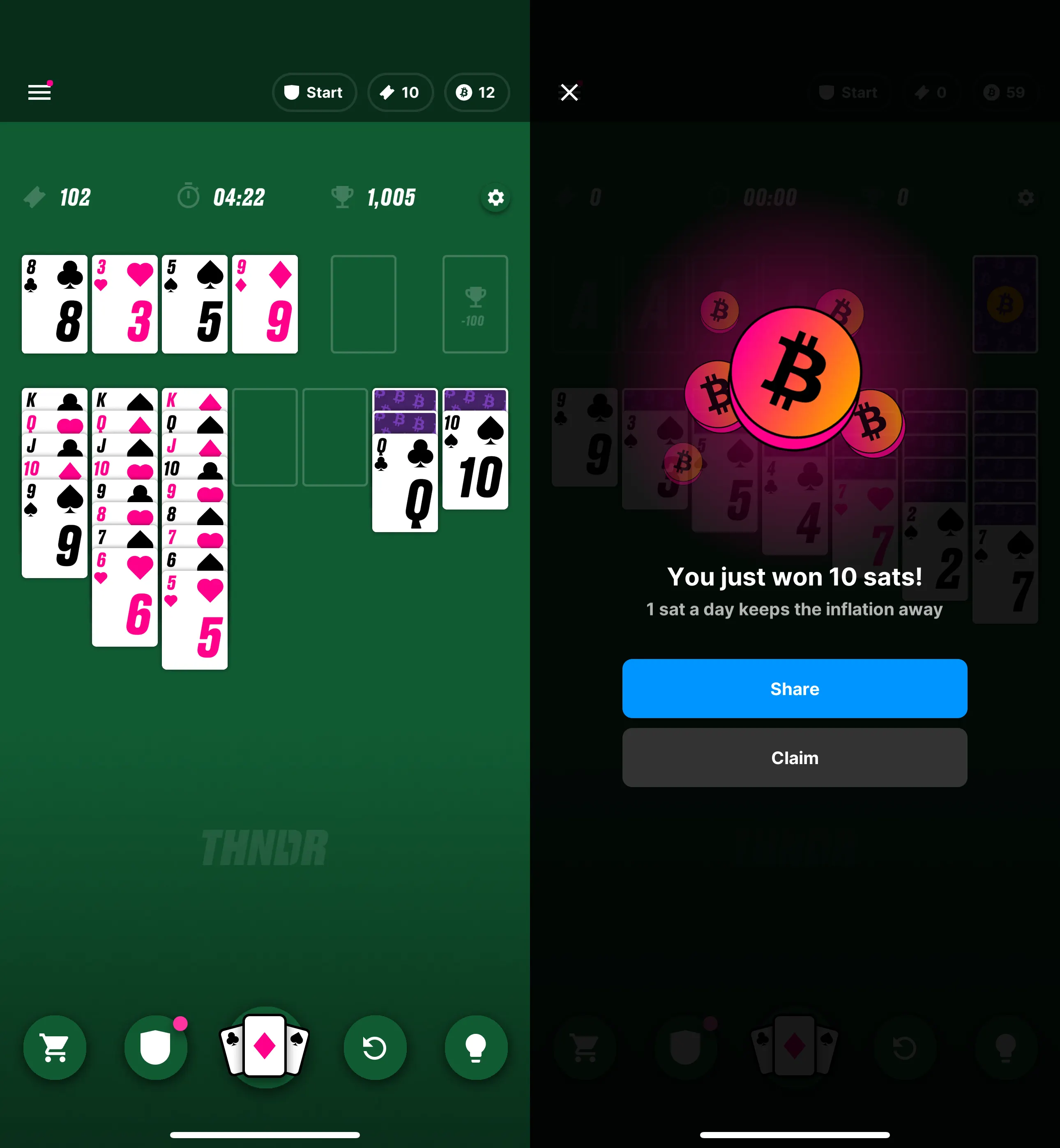 Le solitaire est l'un des jeux les plus populaires injectés de récompenses Bitcoin sur iOS et Android, avec pas moins de trois versions concurrentes qui vous permettent d'accumuler des sats (ou satoshis, alias 1/100 000 000 BTC) tout en empilant des cartes à jouer numériques : Club Bitcoin: Solitaire de THNDR Games, Bitcoin Solitaire de Bling Financial et Solitaire - Card Game 2023 de Viker.