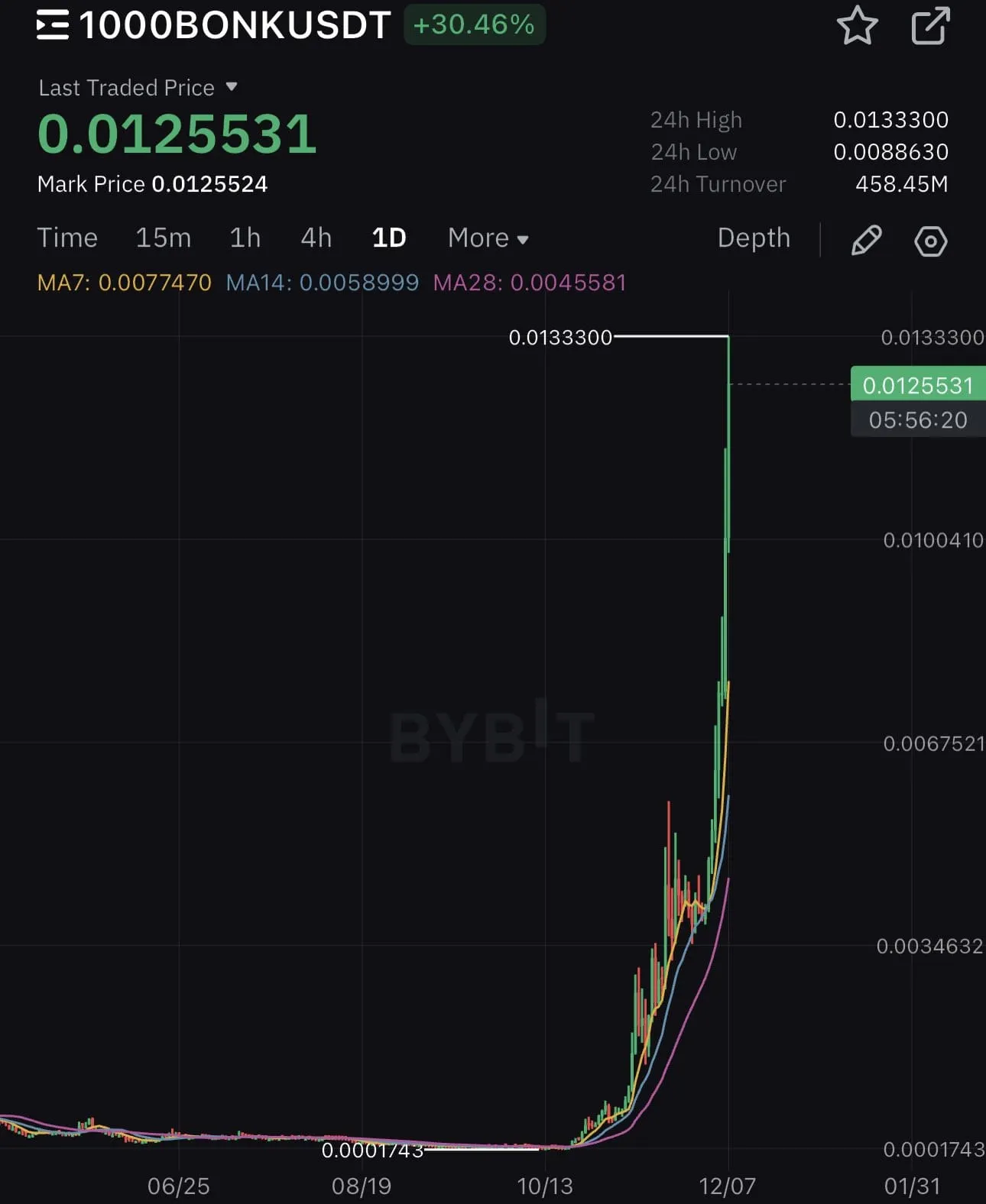- $BONK +10,000% depuis son lancement en mars 2023 et une mkt cap de $1.5 milliards
