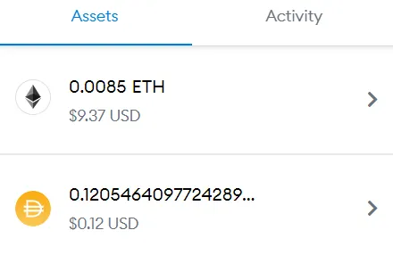 And there it is! Our purchase of DAI confirmed on the blockchain and ready for use.