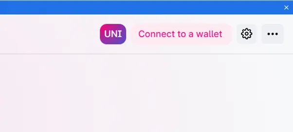 First, we want to send our ETH, which we have already purchased from Binance, to Uniswap. To do that, we'll first have to connect a wallet. We're going to use MetaMask, a popular browser wallet that's compatible with most DeFi applications. To do so, we go on Uniswap and click "Connect to a wallet" on the top right of the site (through a desktop browser).