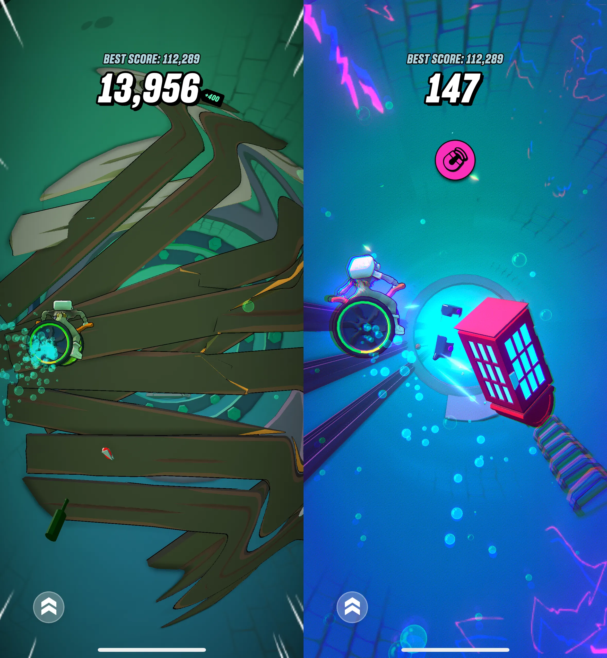 When you double-tap to boost through a wooden blockade, you obviously have to take your finger off the screen momentarily, and that means you stop having directional control. It’s only a fraction of a second, but I’ve had a couple of runs end because of this momentary lack of control—and you can easily avoid it.