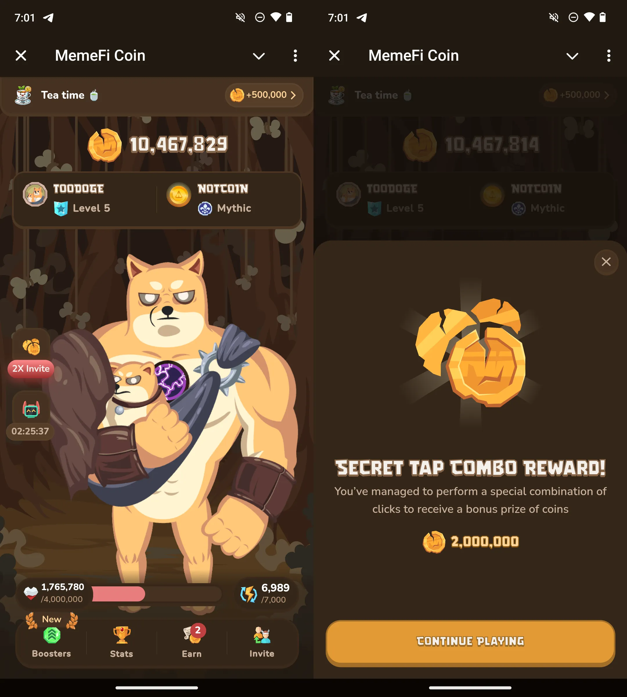 The MemeFi secret tap combo is… well, quite literally, a secret combination of taps in the Telegram combat game. By entering a certain daily pattern of taps while fighting one of the meme monsters, you’ll immediately net a bounty of in-game coins.
