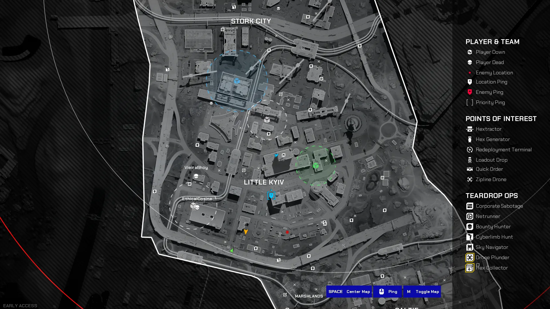 If you open up the map, then you’ll often see some big coloured circles based on the rarity colors, with a little hex box symbol in the middle. That means there’s a player with that color hex in their inventory somewhere in the circle. It’s not an exact location, but it’s enough info for confident players to go hunting to try and pick up an extra hex or two. After all, there’s no need to go looting if you just kill the people who did the looting for you.