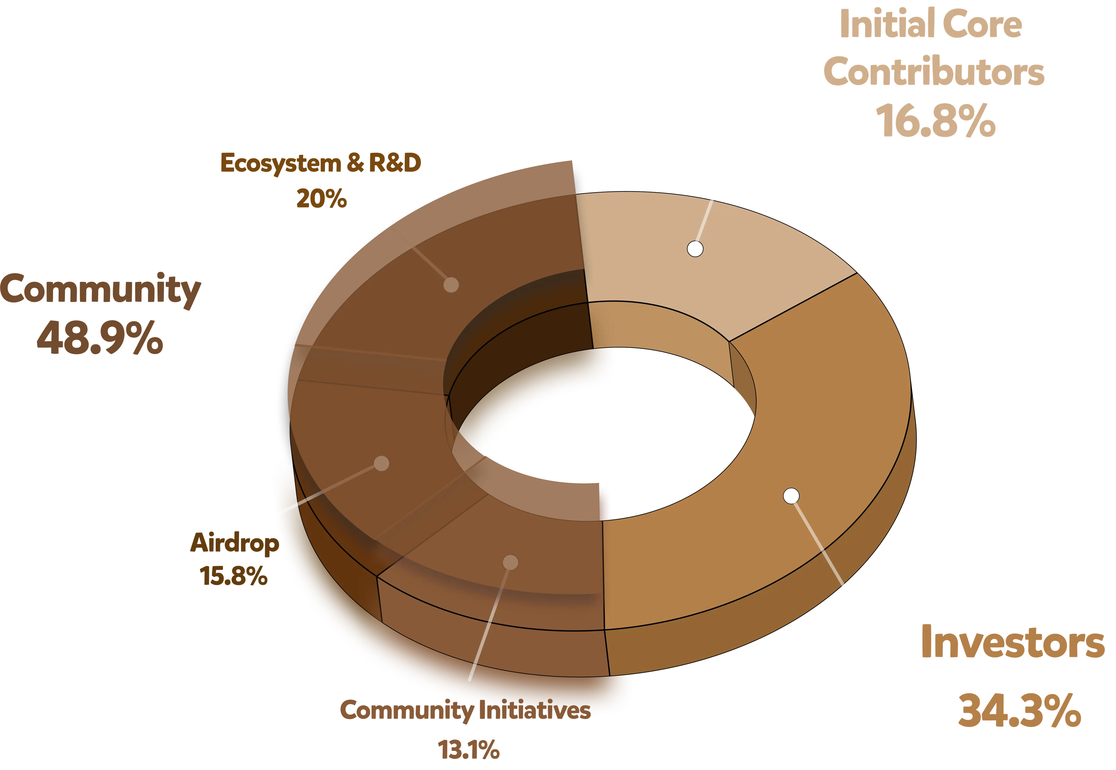 From that 500 million tokens, nearly 49% is slated for the community, which includes allocations for Berachain NFT holders, ecosystem research and development, and future initiatives. Of the 48.9% allotted to the community, 15.8% or 79 million BERA tokens were airdropped to the community starting on February 6, a value of more than $1.1 billion at peak price on the day of launch.