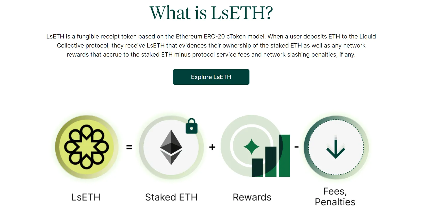 Figment is partnered with Liquid Collective, a Web3 organization that offers Liquid staked ETH (LsETH). Upon depositing ETH, you will receive LsETH that proves ownership of your deposited ETH and any associated staking rewards (minus protocol fees and funds lost in any potential slashing events). Targeted as an institutional LST investing option, LsETH intends to provide ample liquidity and robust security through a network of trusted validators.