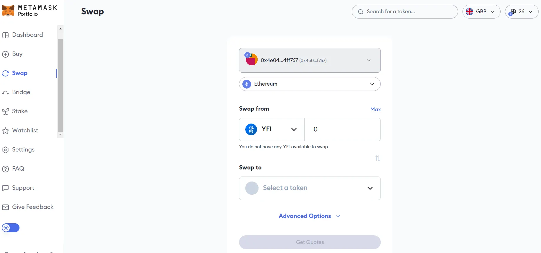 With crypto on your MetaMask, there are now a bunch of options on offer. You can simply hold (or HODL) your crypto in the hopes it will appreciate in value. You could also trade some for another crypto. You can even bridge a crypto from one blockchain to another. To earn yield, you can even stake certain cryptos using MetaMask Portfolio’s built-in option.
